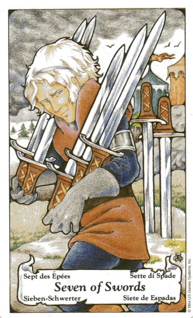 7_Swords_Hanson Published August 8, 2010 at 1377 × 2267 in Scorpio Tarotscope The Seven of Swords from the Hanson Roberts Tarot Like Loading...